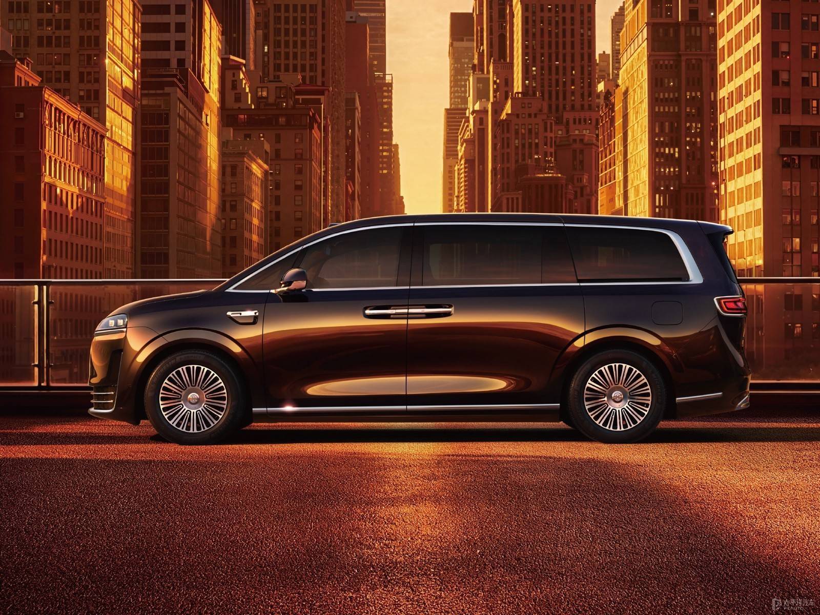 回顾外观,智界V9延续了鸿蒙智行“极致、简约、纯净”的美学理念,与市面主流采用大嘴前脸和繁复格栅的MPV大相径庭,跳出了传统MPV的审美框。新车前脸融合了“智界+问界+尊界”的设计元素,看起来非常高端,贯穿式的灯带和两侧大灯组造型与问界M9非常相似,且会加入尊界S800同款的像素大灯,将会首发全新一代DLP投影大灯和动态迎宾光毯组合,并且可自定义迎宾灯语。